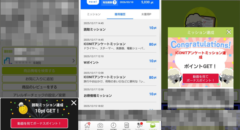 アプリ内に用意されたさまざまな「ミッション」を通じてポイントを貯めることができます。